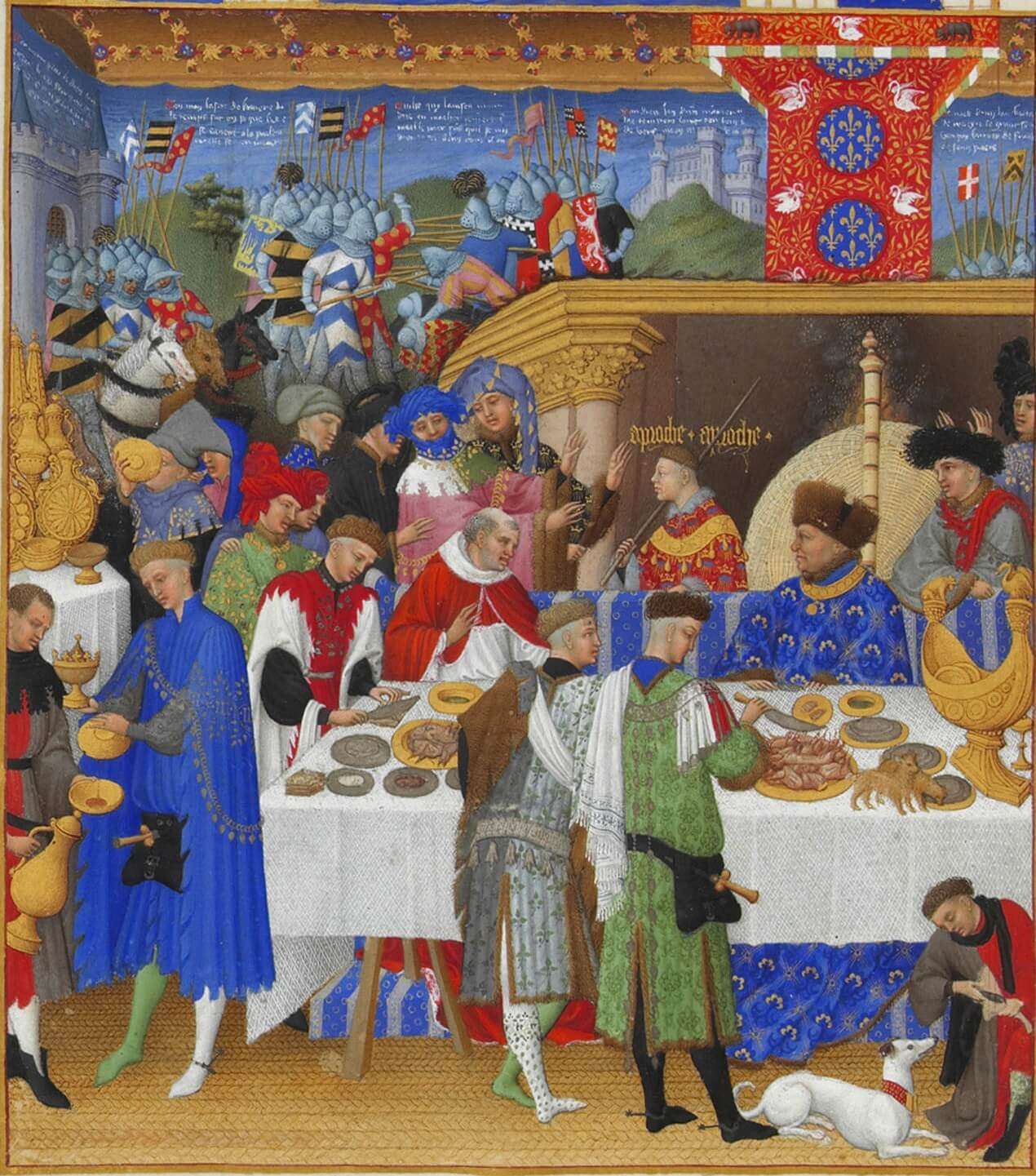 A középkori udvarok előkelőségei nagyra értékelték a pompás és időnként hivalkodó lakomákat. A különleges ételek elfogyasztásán túl a társadalmi érintkezés fontos helyszínei is voltak ezek az események, akkor is sok minden egyszerűbben és gyorsabban dőlt el a terített asztaloknál, csakúgy mint napjainkban.