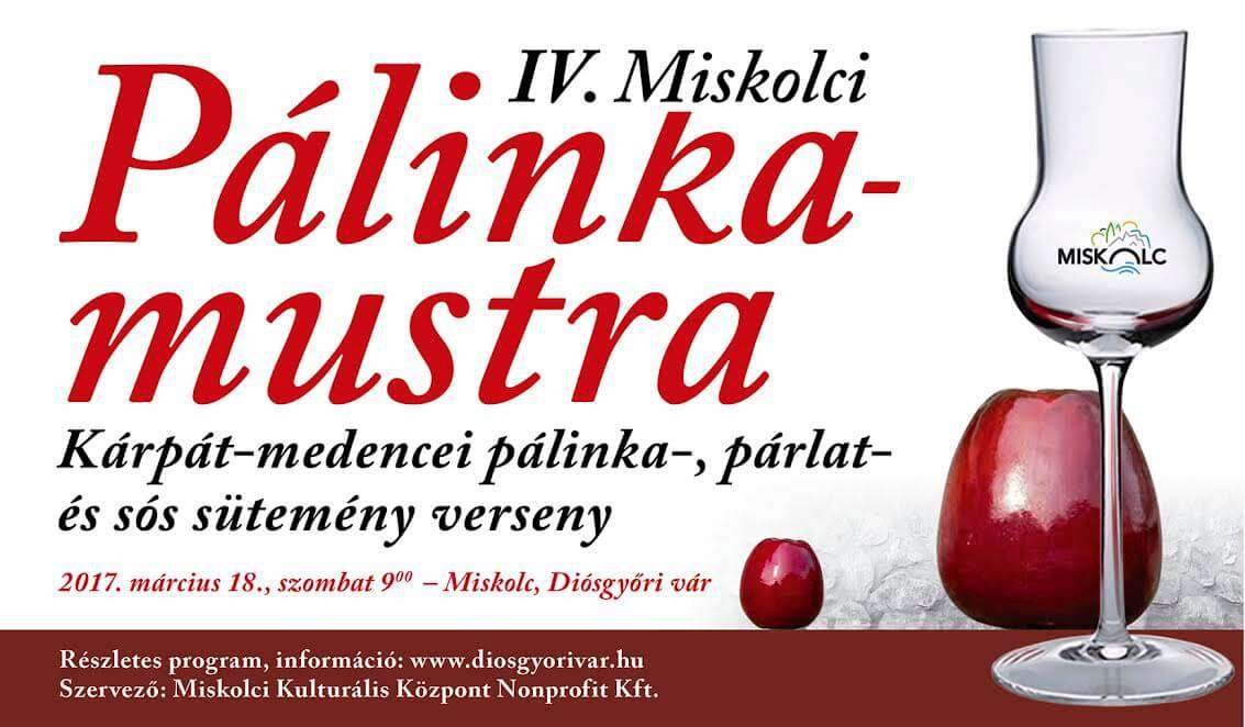 március18IV. Miskolci PálinkamustraDiósgyőri vár Dátum: 2017. március 18.Időpont: 9:00Helyszín: LovagteremBelépő: Ingyenesen látogatható Jegyvásárlás Részletes leírás Vissza az előző oldalra