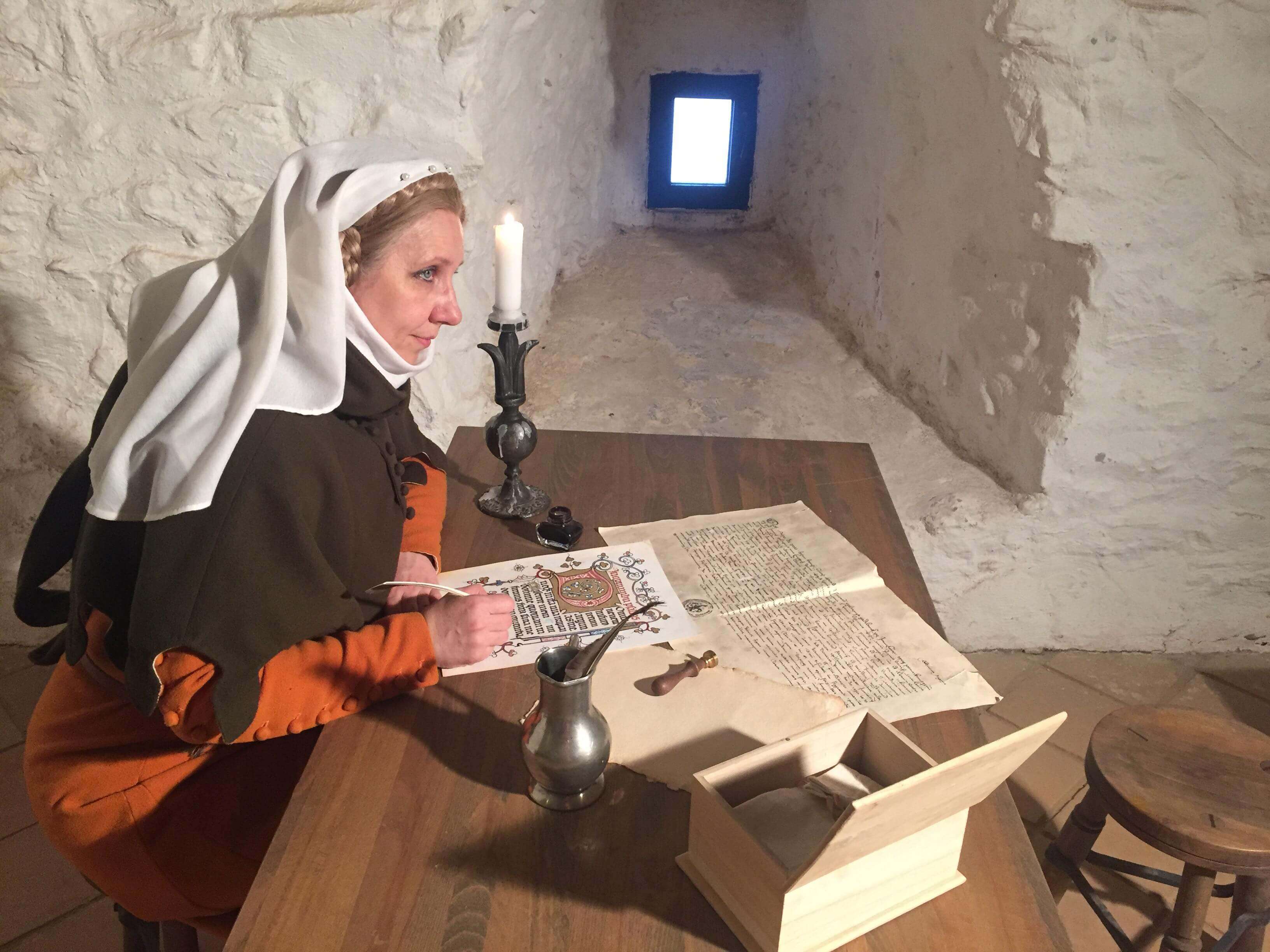 Betűvető mesterünk megismertet az iniciálék történetével, a középkori kódexek világával, a látogatók pedig maguk is kipróbálhatják a középkori írás művészetét.